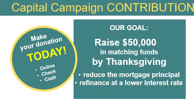 Still needed: $18,500 in pledges to reach our target by Thanksgiving.